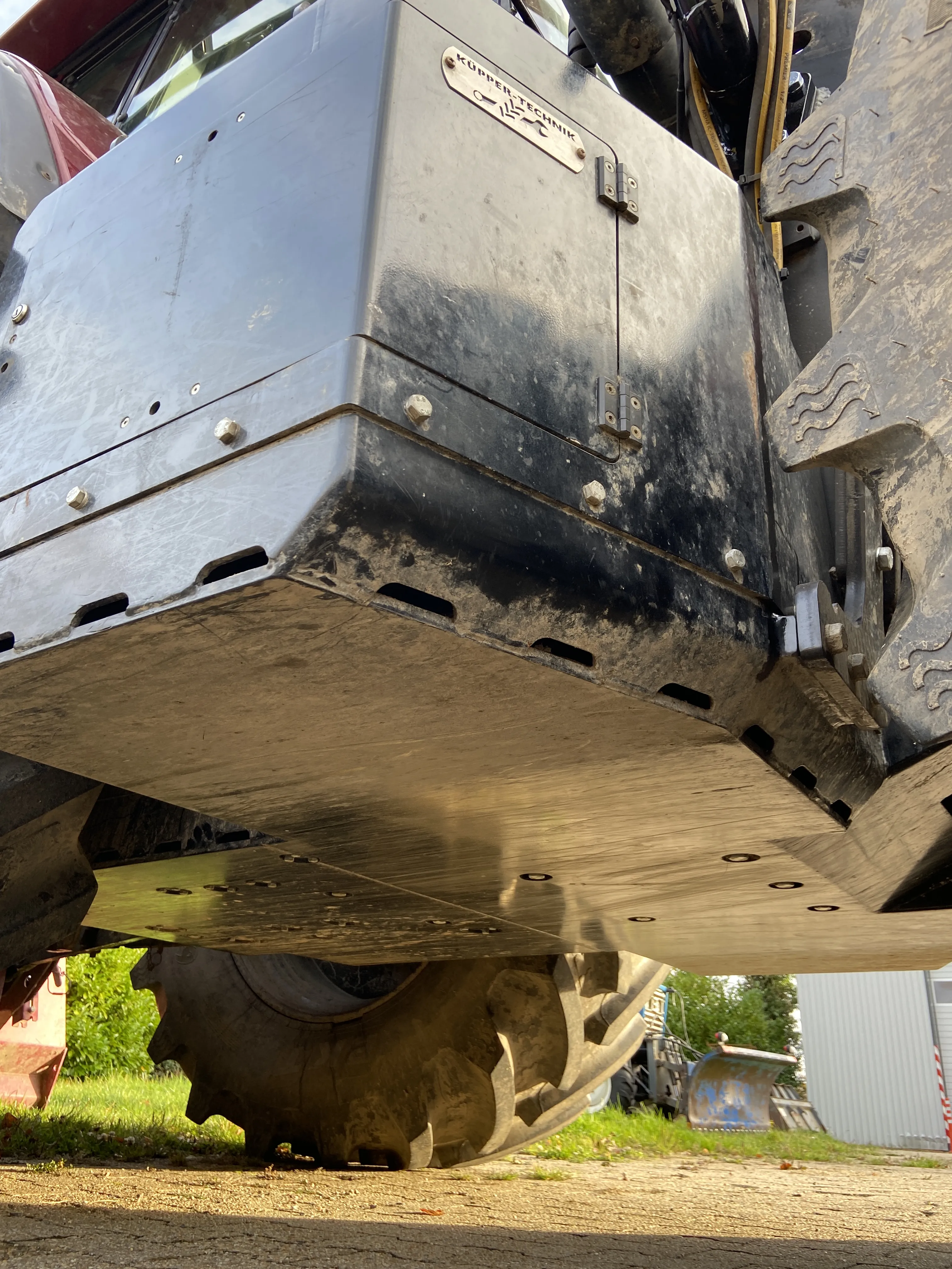 - Der Unterbodenschutz fügt sich passgenau an den Schlepper an, er verfügt über Serviceöffnungen und einen Stauraum für eine Werkzeugkiste.